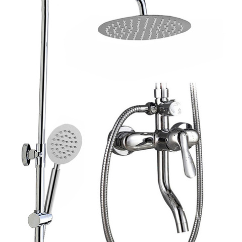 Sistema de ducha de baño moderno Cabezal de ducha redondo Juego de ducha cromado de 3 vías de latón frío y caliente Duchas De Bano