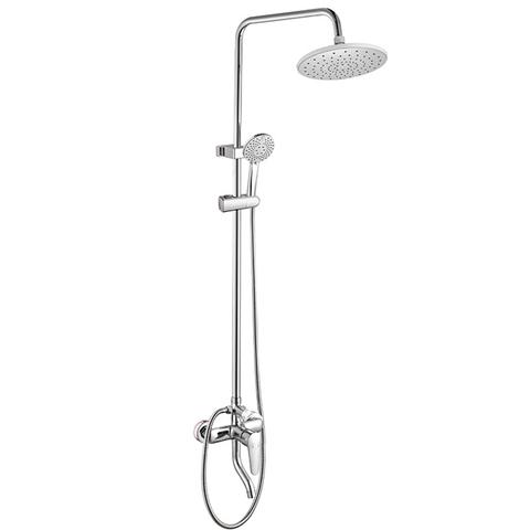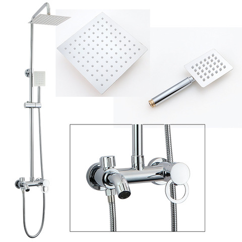 Juego de grifo de ducha de lluvia de 8 ", tubo de latón expuesto, mango de una perilla, cromo pulido, apartamento de Hotel, patrón de pulverización de masaje adecuado